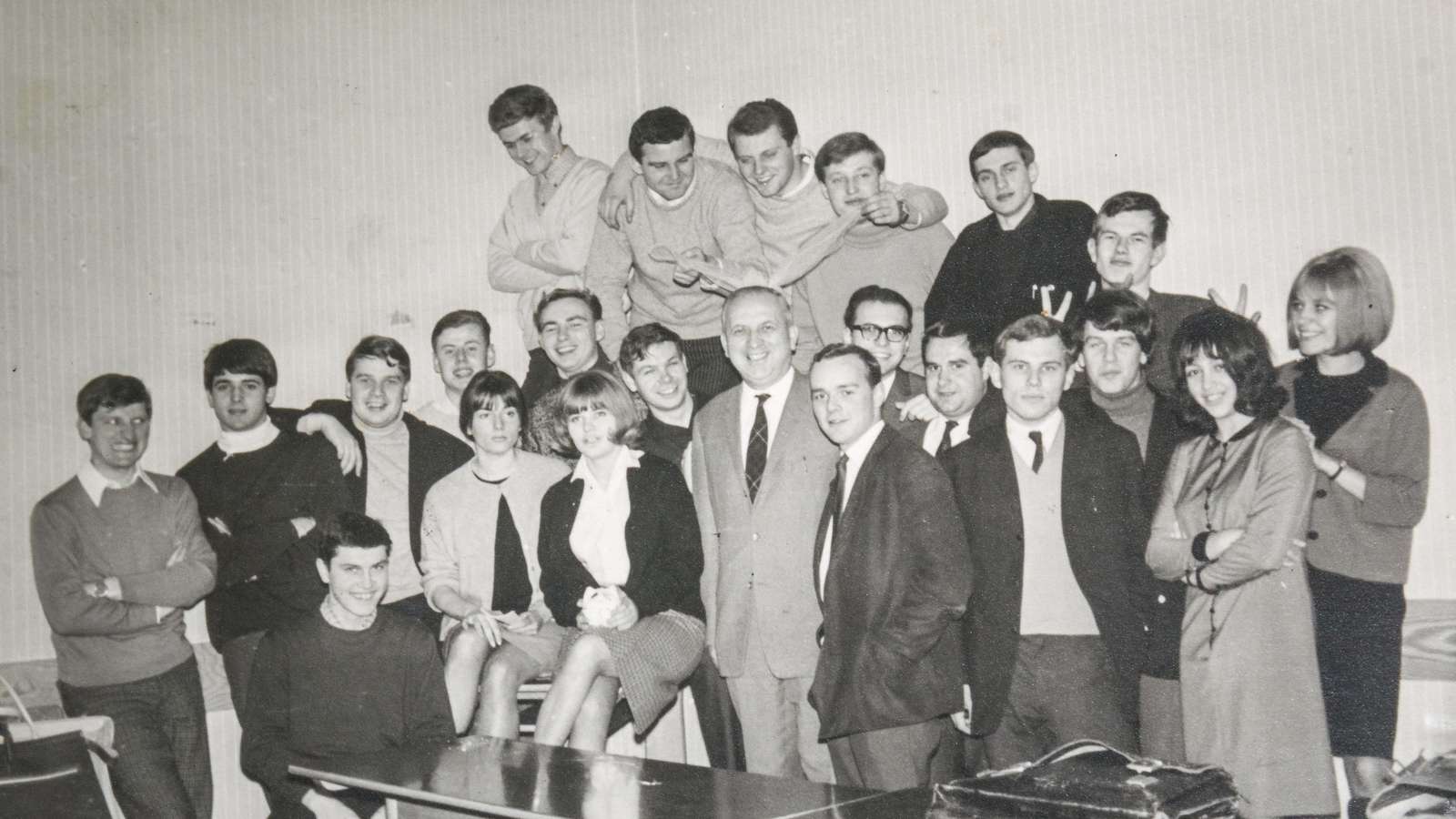 Auf dem ersten Bild ist die erste Koedukationsklasse an der Hola mit den Mädchen Angelika Jallasch (rechts), Edith Wittner, heute Haase (links daneben), Elke Poser (links neben dem Klassenlehrer Eduard Rüffer) und Barbara Brüning (links) zu sehen. Erland Schneck schaut zwischen Rüffer und Elke Poser (heute Raich) heraus.