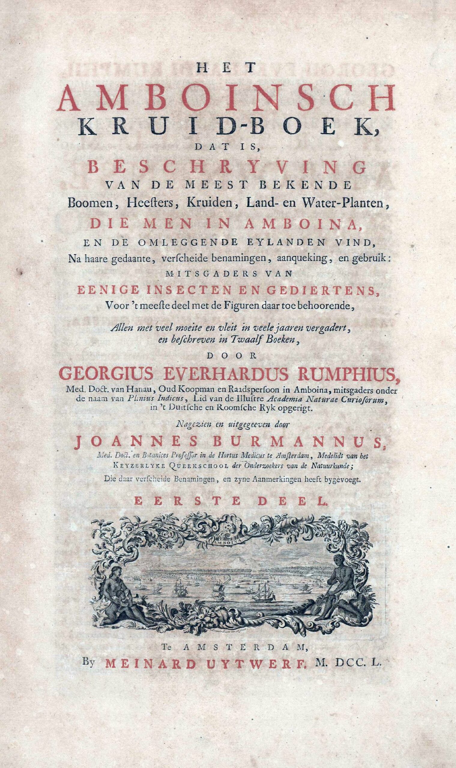 Rumphius ist am besten bekannt für seine Autorschaft von Het Amboinsche kruidboek oder Herbarium Amboinense, einem Katalog der Pflanzen der Insel Amboina (im heutigen Indonesien ), posthum veröffentlicht Die Arbeit umfasst 1.200 Arten, 930 mit bestimmten Artennamen und weitere 140, die auf Gattungsniveau identifiziert wurden.