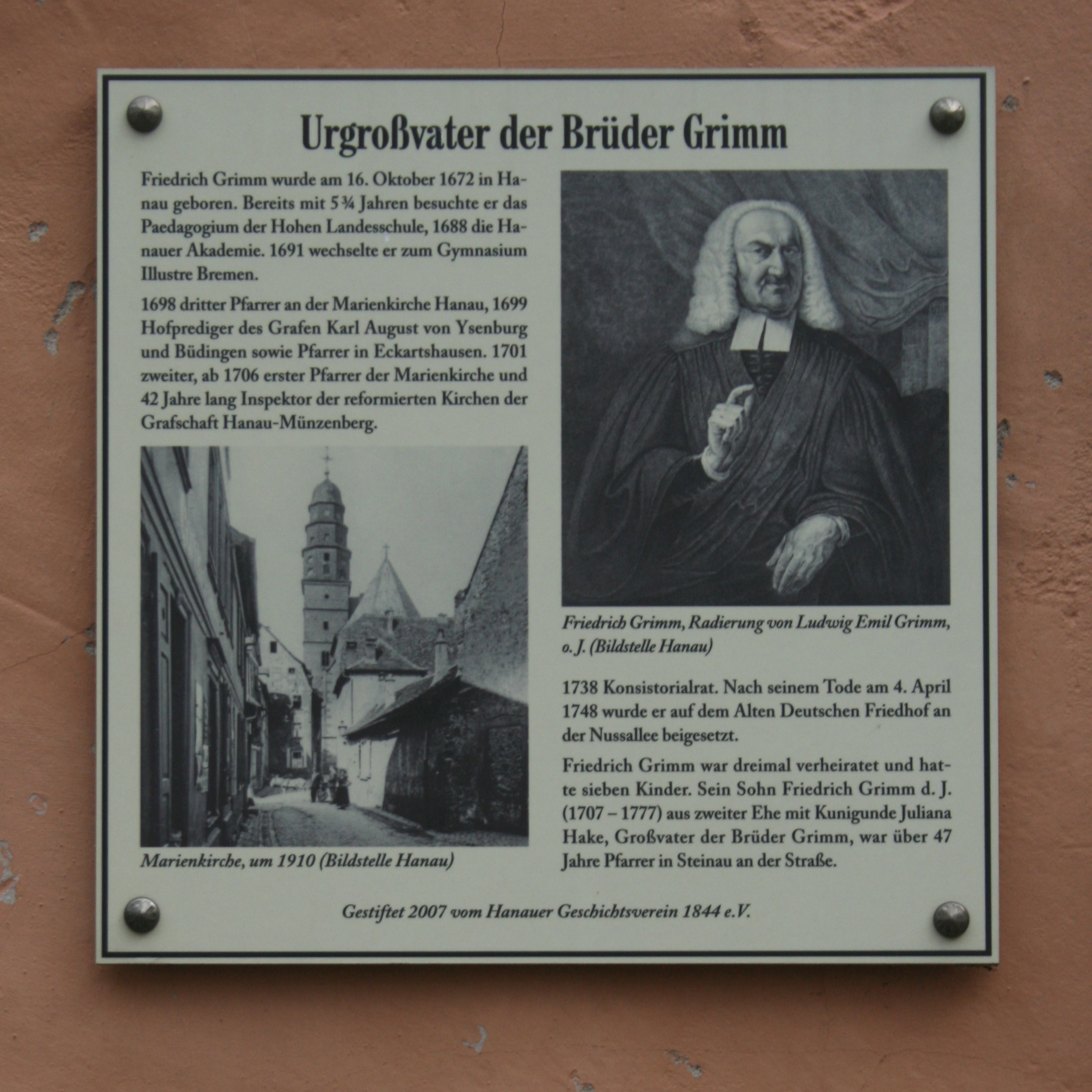Friedrich Grimm wurde auf dem alten Deutschen Friedhof an der Nussallee in Hanau beigesetzt. Der Grabstein wurde während des Zweiten Weltkriegs bei dem Luftangriff vom 19. März 1945 auf Hanau zerstört.