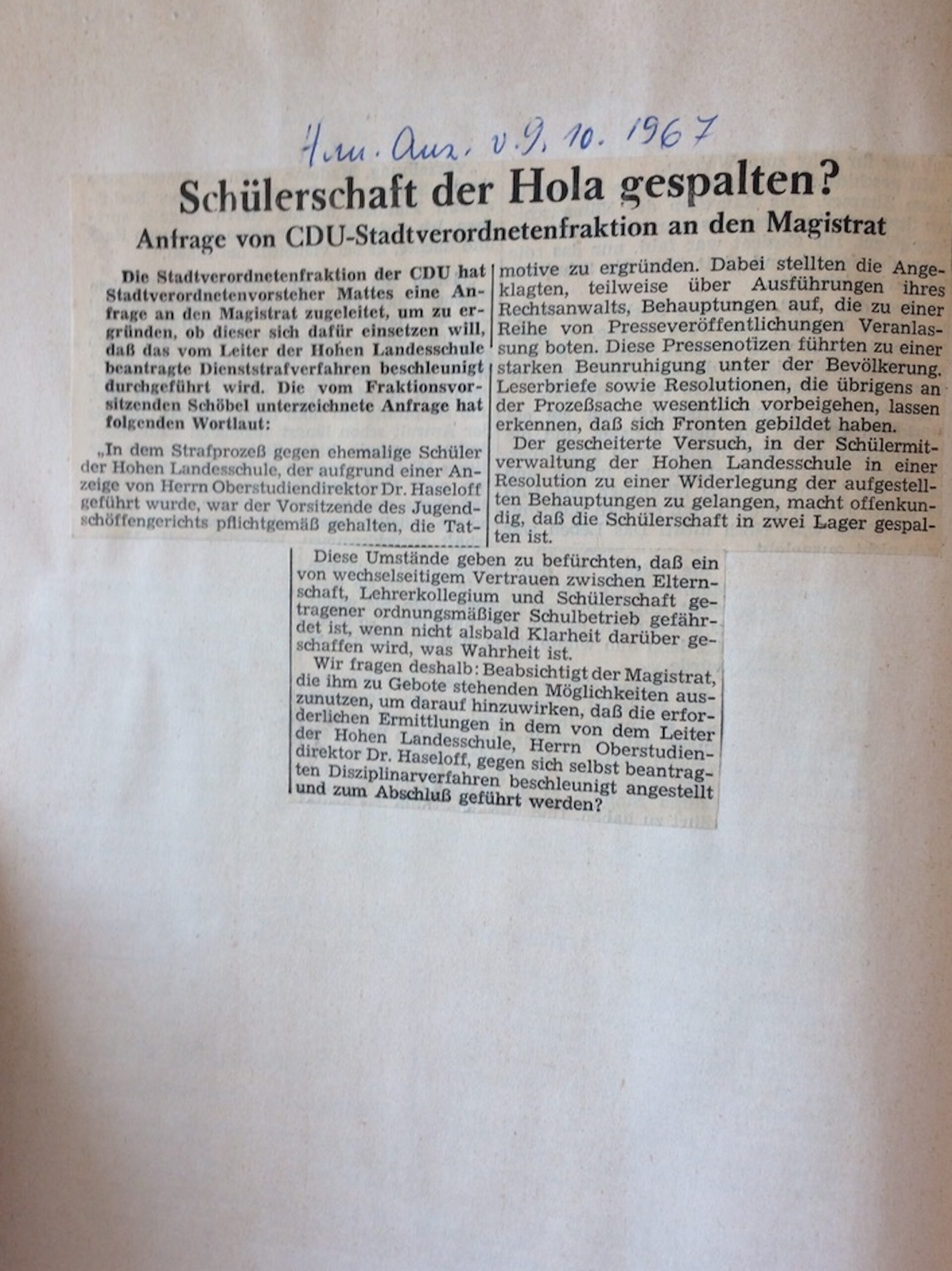 Das Götz-Zitat an der Haustür des Direktors zog weitere Kreise: Die ehemaligen Schüler warfen Direktor Haseloff „diktatorische“ Züge vor. Dieser erhob gegen sich selbst schließlich ein Dienststrafverfahren gegen sich selbst.