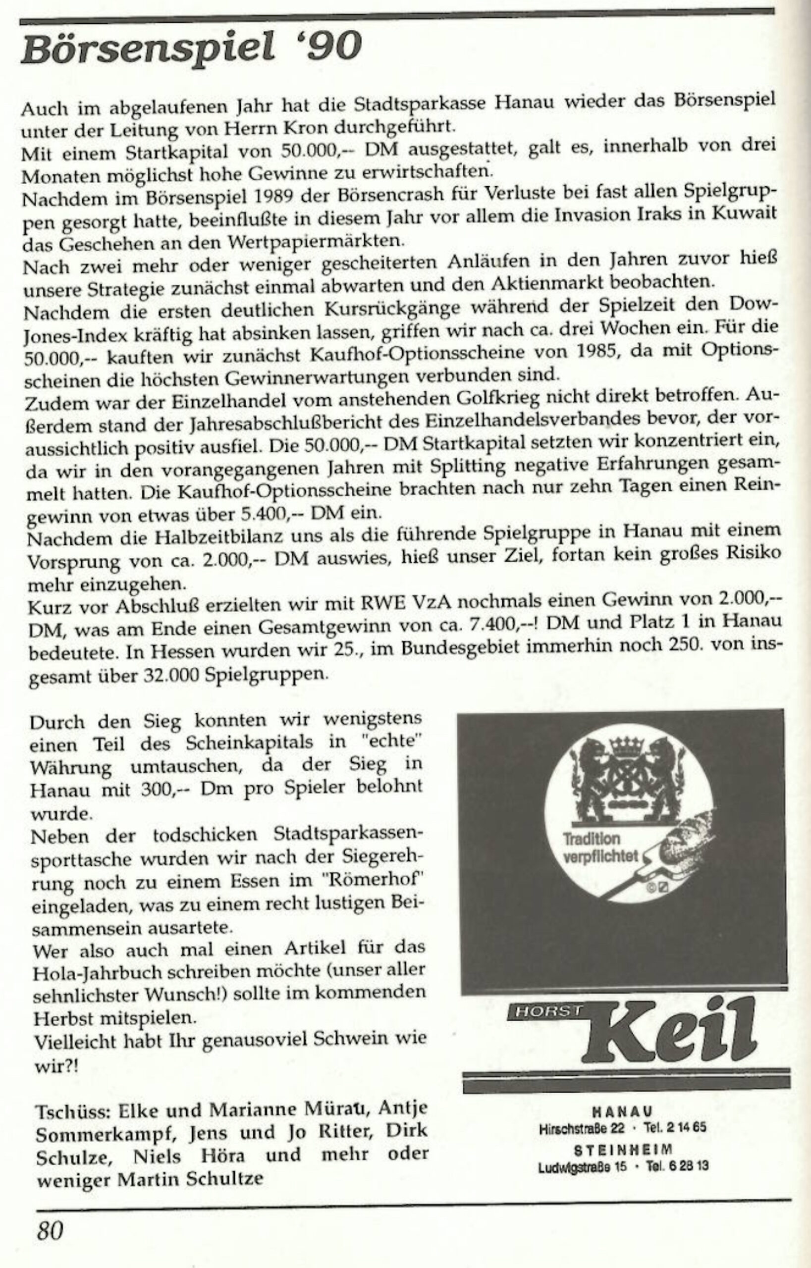 Börsenspiel 1990