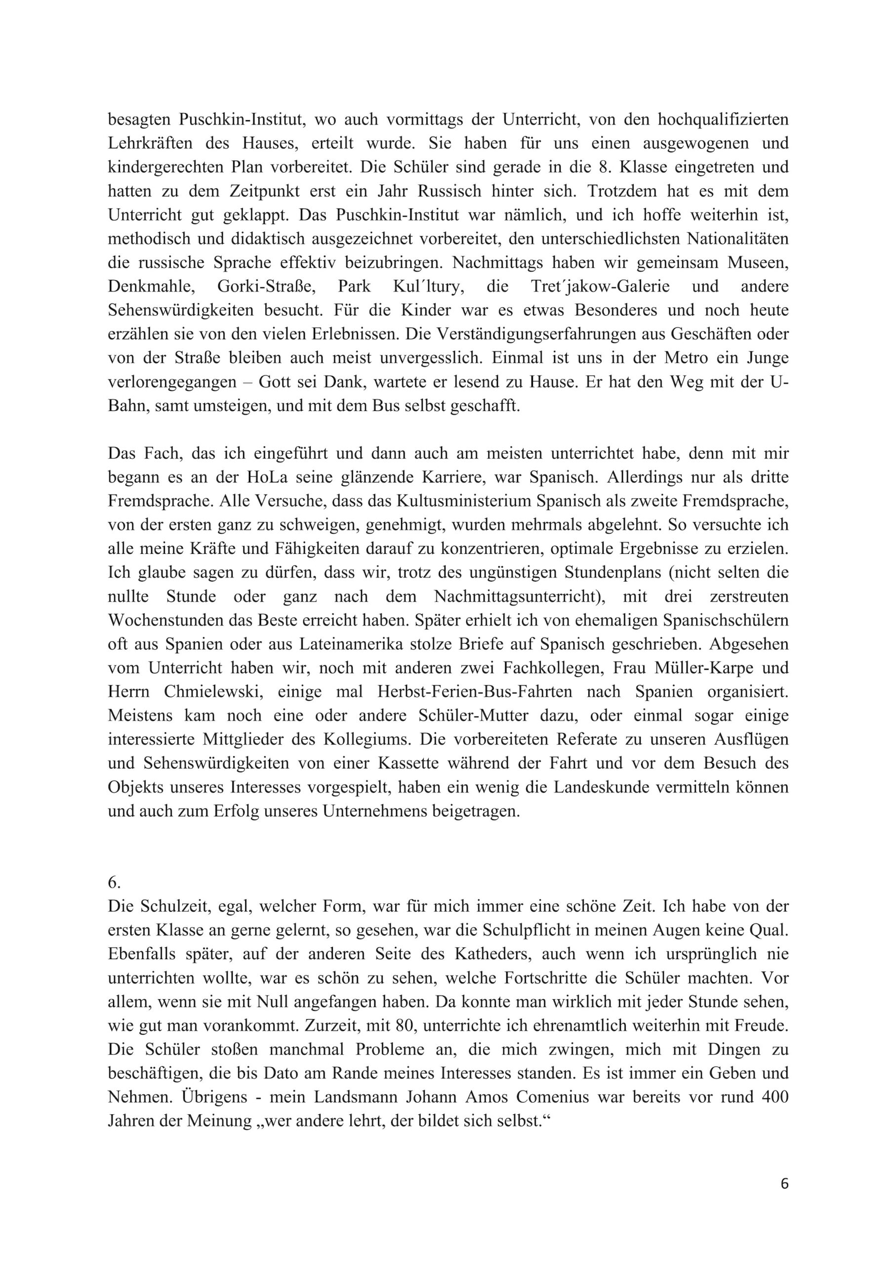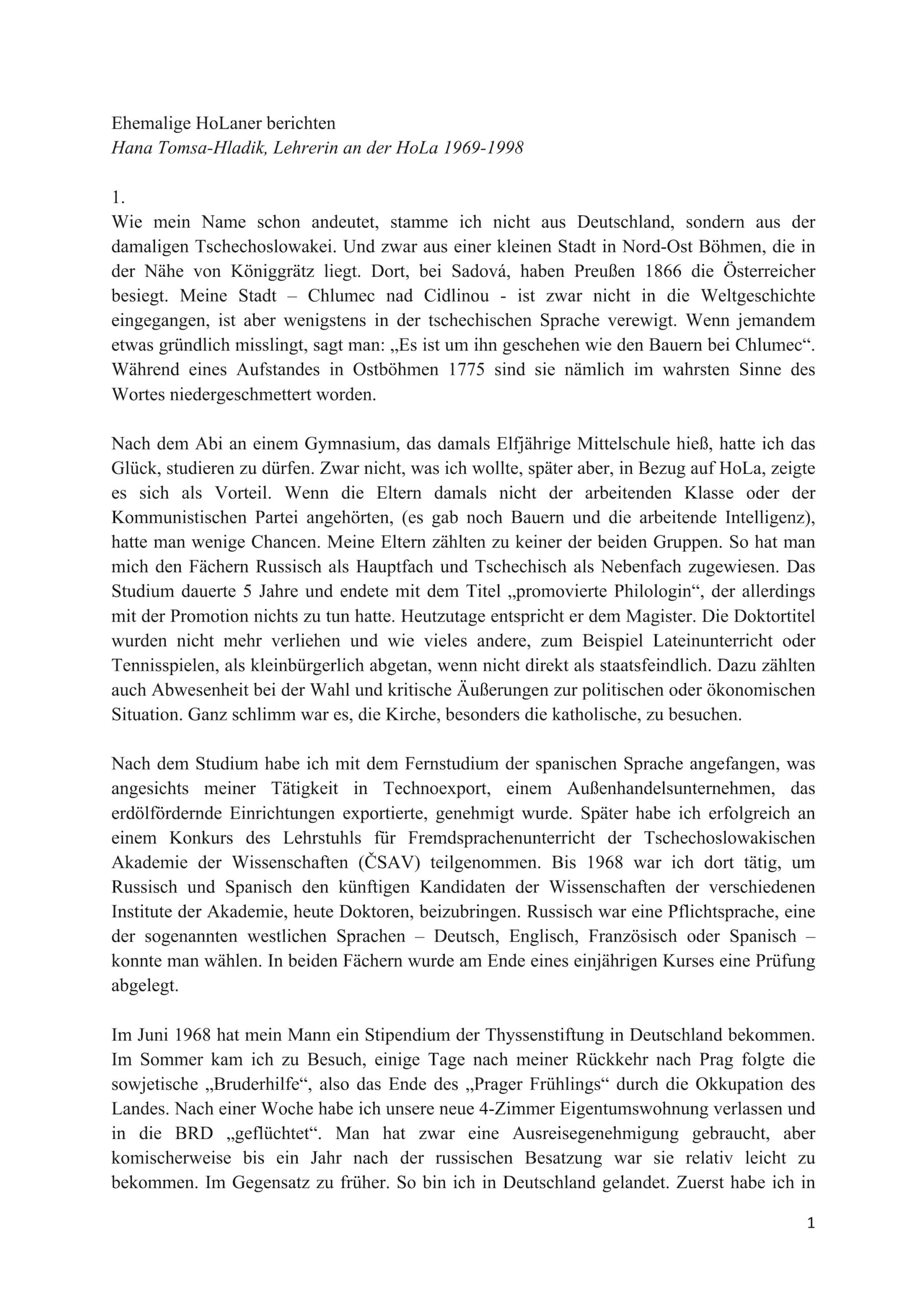 Erinnerung der Lehrerin Hana Tomsa an ihr Arbeitszeit an der HOLA