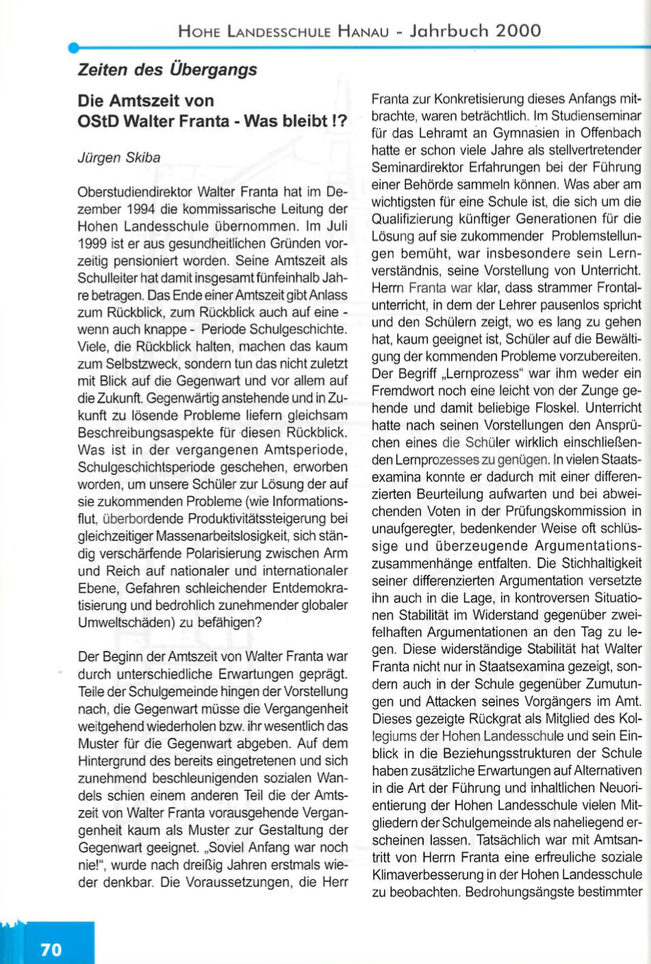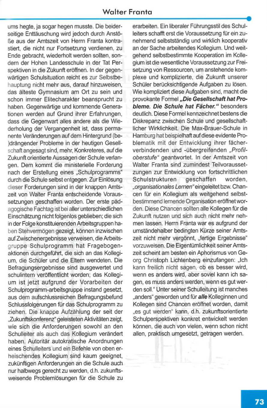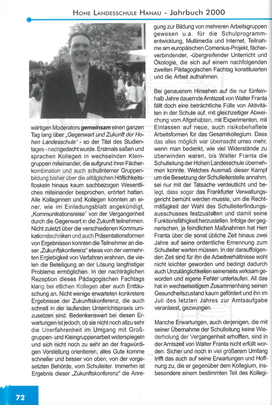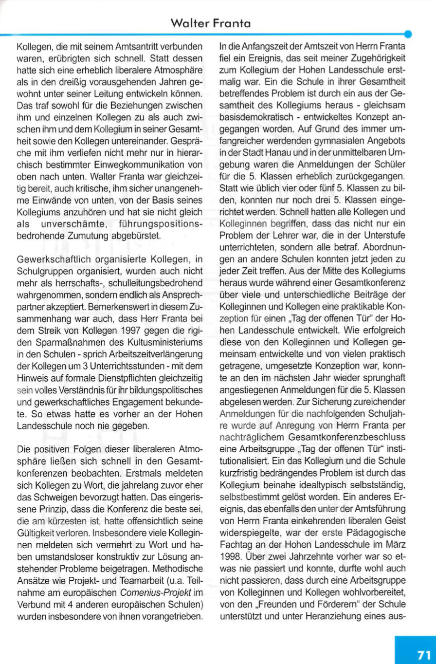 Walter Franta war von 1994 bis 1999 Schulleiter der HOLA. Aus gesundheitlichen Gründen musste Franta vorzeitig außer Dienst gestellt werden.